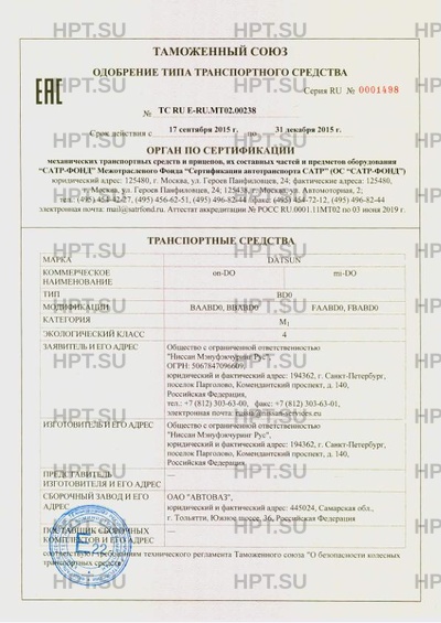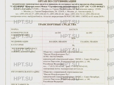 | Марка ТС | DATSUN |
