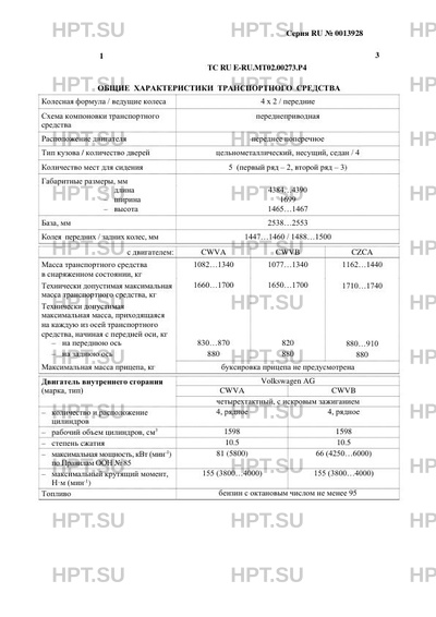 | Марка ТС | VOLKSWAGEN |