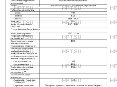 | Исполнение загрузочного пространства | цельнометаллический фургон |