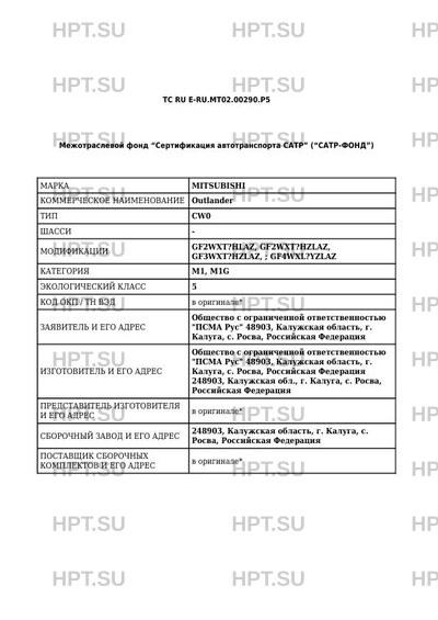 | Дополнительная информация | Транспортные средства MITSUBISHI CW0 модификации GF2WX???LAZ относятся к категории M1 Транспортные средства MITSUBISHI CW0 модификаций GF?WX???ZLAZ, GF4WXL?YZLAZ относятся к категории M1G |