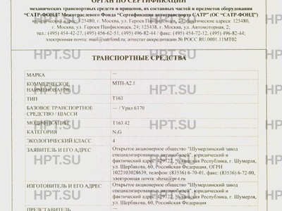 Предприятие-изготовитель Открытое акционерное общество Шумерлинский завод специализированных автомобилей , 429122, Чувашская Республика, г. Шумерля, ул. Щербакова, 60, Российская Федерация