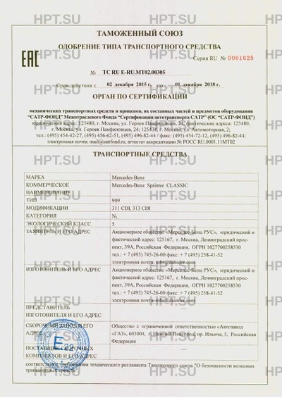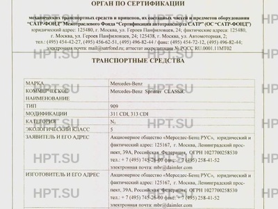 Коммерческое наименование Mercedes-Benz Sprinter СLASSIC