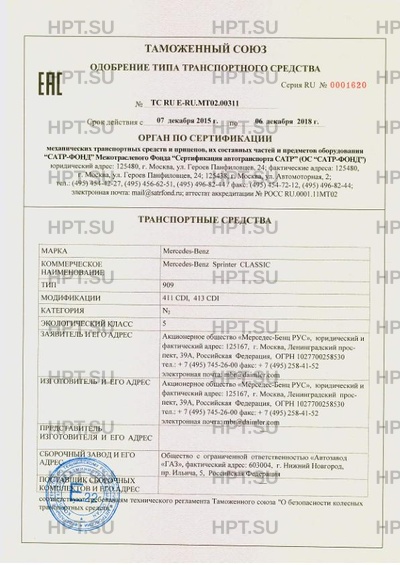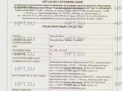 Коммерческое наименование Mercedes-Benz Sprinter СLASSIC