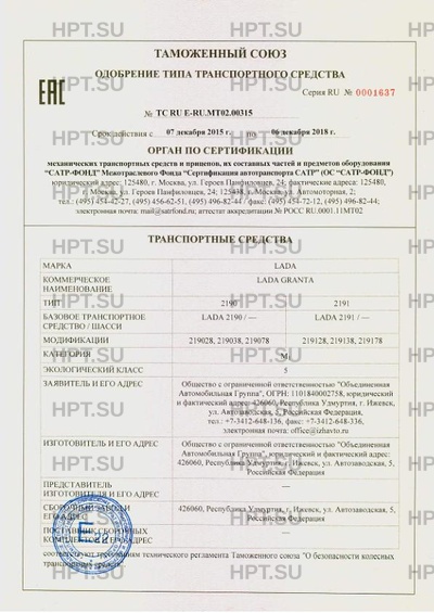 | Коммерческое наименование | LADA GRANTA |
