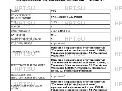 Тип ТС Модификация 3163 может выпускаться в исполнении "Лесная охрана"
