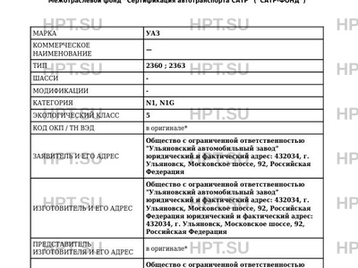| Дополнительная информация | В зависимости от комплектации транспортные средства модификаций 23602?-04 оснащаются изотермическим фургоном категории IN с коэффициентом теплопередачи, не превышающим 0,7 Вт/(м2·К), или изотермическим фургоном категории IR с коэффициентом теплопередачи, не превышающим 0,4 Вт/(м2·К). Модификация 23632 может выпускаться в исполнении «Лесная охрана». |