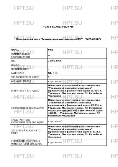 | Номер документа | ТС RU Е-RU.МТ02.00329.Р10 |