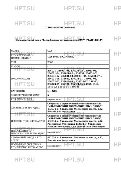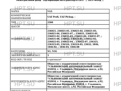 | Коммерческое наименование | UAZ Profi, UAZ Pickup, -; 2360 |