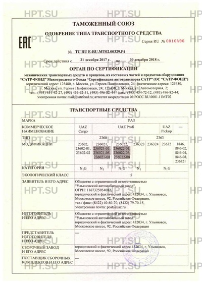 Коммерческое наименование UAZ Cargo, UAZ Profi, UAZ Pickup