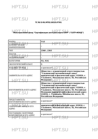 | Номер документа | ТС RU Е-RU.МТ02.00329.Р7И1 |