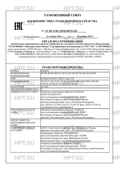ТС RU E-RU.МТ02.00333.Р10
