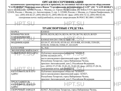 Предприятие-изготовитель Публичное акционерное общество "КАМАЗ", место нахождения и фактический адрес: 423827, Республика Татарстан, город Набережные Челны, проспект Автозаводский, дом 2, Российская Федерация
