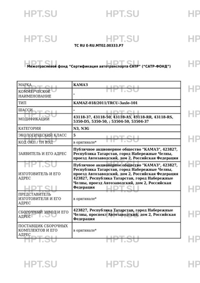 Номер документа ТС RU Е-RU.МТ02.00333.Р7