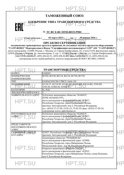 | Номер документа | ТС RU Е-RU.МТ02.00333.Р9И1 |