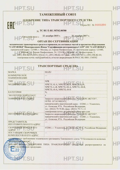 Модификации NPR75L-K-A,NPR75L-K-B,NPR75L-L-A, NPR75L-L-B,NPR75L-M-A,NPR7