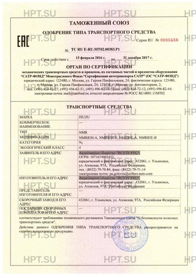 ТС RU E-RU.МТ02.00383.Р1