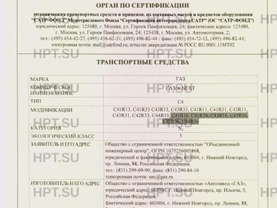 Предприятие-изготовитель Общество с ограниченной ответственностью "Автомобильный завод "ГАЗ", юридический адрес: 603004, Нижегородская область, город Нижний Новгород, проспект Ильича, дом 5, Российская Федерация, фактический адрес: 603004, Нижегородская область, город Нижний Новгород, проспект Ленина, дом 88, Российская Федерация