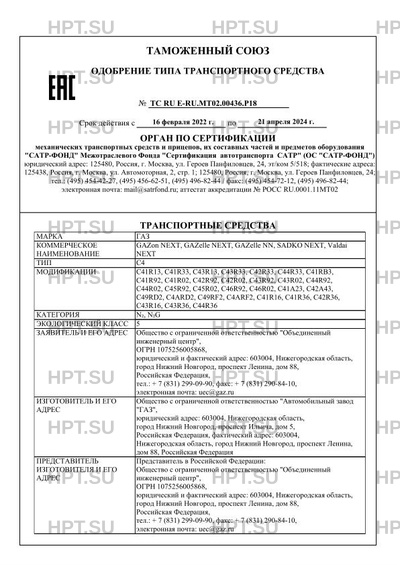 Коммерческое наименование GAZon NEXT, GAZelle NEXT, GAZelle NN, SADKO NEXT, Valdai NEXT