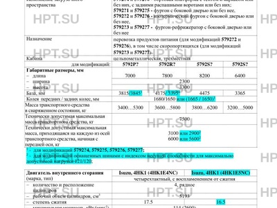 | Исполнение загрузочного пространства | 5792?4 и 5792?0 - бортовая платформа с тентом и каркасом или без них, с задними распашными воротами или без них; 5792?1 и 5792?5 - фургон с боковой дверью или без нее, 5792?2 и 5792?6 - изотермический фургон с боковой дверью или без нее, 5792?3 и 5792?7 - фургон-рефрижератор с боковой дверью или без нее |