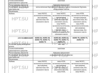 | Оборудование ТС | централизованная система регулирования давления воздуха в шинах; устройство вызова экстренных оперативных служб с функцией автоматического срабатывания при опрокидывании; устройство ограничения максимальной скорости (функцию устройства ограничения максимальной скорости выполняет электронный блок управления двигателем); дневные ходовые огни (для исполнений соответствующих требованиям Правил ООН № 48-04) по заказу: коробки отбора мощности; предпусковой подогреватель двигателя; лебедка; держатель запасного колеса |