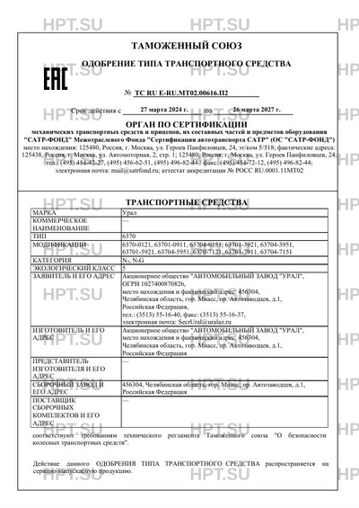 Заявитель Акционерное общество "АВТОМОБИЛЬНЫЙ ЗАВОД "УРАЛ", ОГРН 1027400870826, место нахождения и фактический адрес: 456304, Челябинская область, гор. Миасс, пр. Автозаводцев, д.1, Российская Федерация, тел.: (3513) 55-16-40, факс: (3513) 55-16-37, электронная почта: SecrUral@uralaz.ru