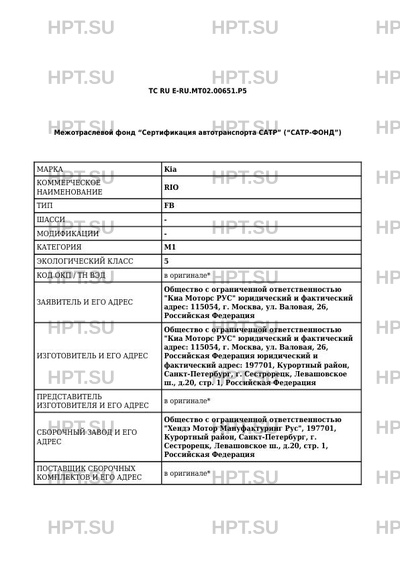 | Сборочный завод | Общество с ограниченной ответственностью "Хендэ Мотор Мануфактуринг Рус", 197701, Курортный район, Санкт-Петербург, г. Сестрорецк, Левашовское ш., д.20, стр. 1, Российская Федерация Акционерное общество “АЗИЯ АВТО”, юридический и фактический адрес: 070002, город Усть-Каменогорск, улица Бажова, 101/1, Республика Казахстан |