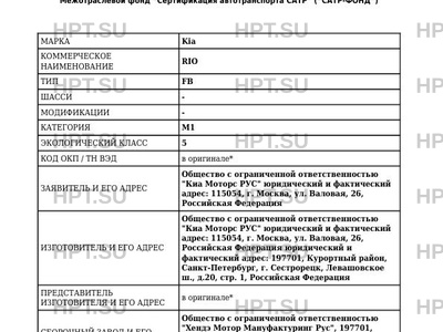 | Представитель изготовителя | Представитель в Российской Федерации: Общество с ограниченной ответственностью "Киа Моторс РУС". юридический и фактический адрес: 115054, г. Москва, ул. Валовая, 26, Российская Федерация. ОГРН: 5087746291760. Тел. +7 (495) 287-09-00. Факс +7 (495) 287-09-01. Представитель в Республике Беларусь: Общество с ограниченной ответственностью "Автопалас-М", УНП 101516333, юридический адрес: 223053, Минская область, Минский район, район деревни Боровая, 2-58, Республика Беларусь, фактический адрес: 220056, г. Минск, проспект Независимости, 202/3, Республика Беларусь, тел.: + 375 (17) 266-40-20, факс: + 375 (17) 285-25-81, электронная почта: info@kia-vostok.by |