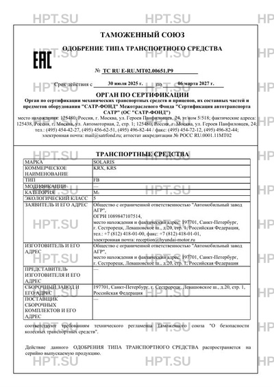 | Марка ТС | SOLARIS |