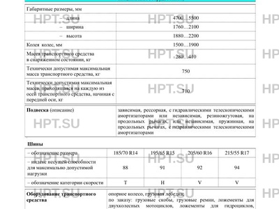 | Оборудование ТС | опорное колесо, грузовая лебедка; по заказу: грузовые скобы, грузовые ремни, ложементы для двухколесных мотоциклов, ложементы для гидроциклов, ложементы для снегоходов, кронштейн крепления запасного колеса, запасное колесо |
