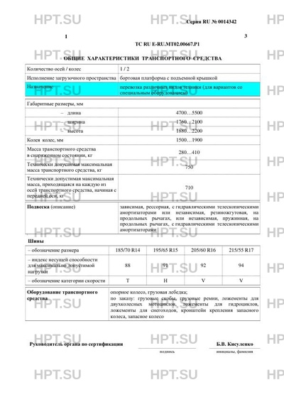 | Исполнение загрузочного пространства | бортовая платформа с подъемной крышкой |