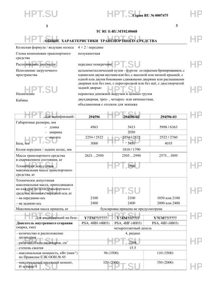 Тип ТС Транспортные средства модификации 294596 изготавливаются на базе Peugeot типа Y…