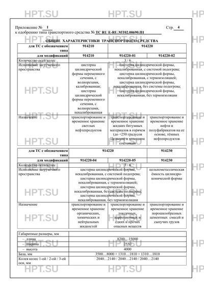 Тип ТС 914210, 914220, 914230 Модификации полуприцеп-цистерна 914220-02, 914220-04, 91…