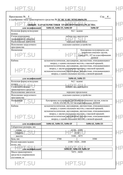 | Оборудование ТС | устройство вызова экстренных оперативных служб с автоматическим срабатыванием при опрокидывании; устройство ограничения максимальной скорости (функцию устройства ограничения максимальной скорости выполняет адаптационный блок совместно с электронным блоком управления двигателем - для мод. 5490-Т5, 5490-S5 или электронный блок управления двигателем - для мод. 5490-5P); электронная система контроля устойчивости по заказу: предпусковой подогреватель двигателя; автономный отопитель; кондиционер (хладагент R134A); коробка отбора мощности с оборудованием для гидропривода самосвальной установки и цистерны; специальные предупреждающие огни; устройства и элементы конструкции для обеспечения возможности перевозки опасных грузов |