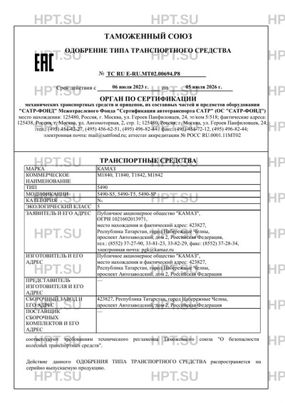 | Номер документа | ТС RU Е-RU.МТ02.00694.Р8 |