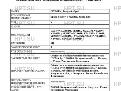 | Тип ТС | Марка Коммерческое наименование CITROEN Space Tourer Opel Zafira Life Peugeot Traveller |