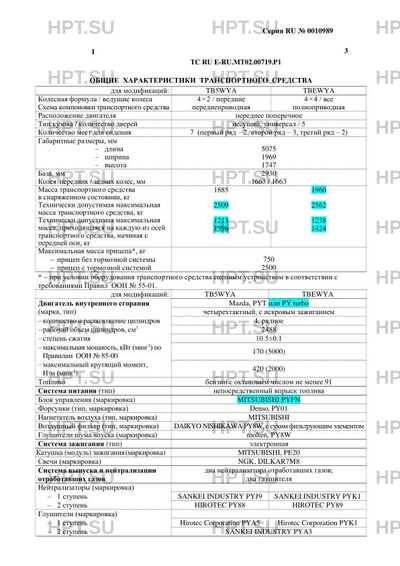| Дополнительная информация | Номер программного обеспечения, который может быть нанесен на блоке управления двигателем: для модификаций: TB5WYA TBEWYA номер программного обеспечения: PXA8 PXA9 d В целях реализации пилотного проекта в соответствии с приказом Росстандарта от 29 августа 2018 г. № 1822 одобрение типа транспортного средства подписано электронной подписью в соответствии с требованиями Федерального закона от 6 апреля 2011 г. № 63-Ф3 «Об электронной подписи». |