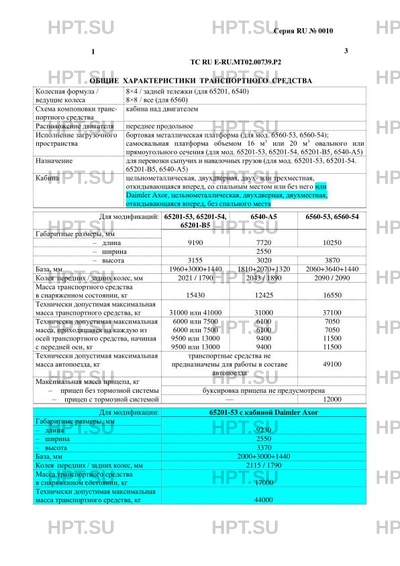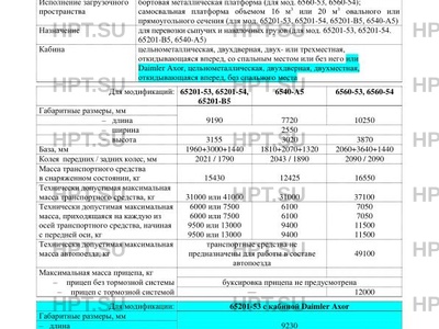 | Тип ТС | Транспортные средства не предназначены для перевозки опасных грузов. В случае несоответствия параметров транспортных средств значениям, установленным в приложении № 5 к техническому регламенту Таможенного союза "О безопасности колесных транспортных средств", для передвижения транспортных средств по территории государств - членов Таможенного союза необходимо оформление специального разрешения. Таблица перевода буквенно-цифровых обозначений модификаций транспортных средств в вариант для формализованного (цифрового) кода продукции в процессе производства и отгрузки в соответствии с системой SAP (System Analysis and Program Development), применяемой изготовителем транспортных средств: Обозначение модификации Вариант обозначения для формализованного (цифрового) кода 6540-A5 6540-48 65201-B5 65201-49 |