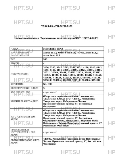 | Заявитель | Общество с ограниченной ответственностью "ДАЙМЛЕР КАМАЗ РУС" 423800, Республика Татарстан, город Набережные Челны, Производственный проезд, 47, Российская Федерация |