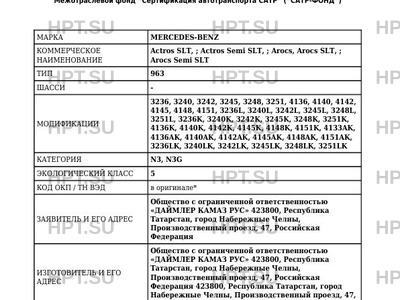 | Коммерческое наименование | Actros SLT; Actros Semi SLT; Arocs, Arocs SLT; Arocs Semi SLT |