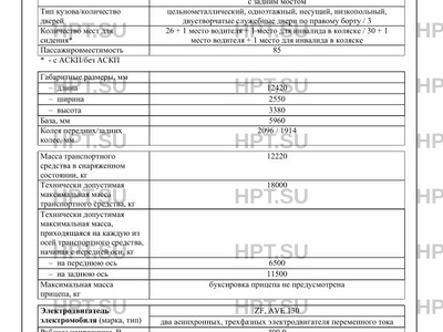 | Тип ТС | Транспортные средства относятся к классу I, имеют выделенную площадь для стоящих пассажиров и обеспечивают быструю смену пассажиров (абзац пятый пункта 2.2 приложения № 1 к техническому регламенту Таможенного союза «О безопасности колесных транспортных средств»). Транспортные средства не предназначены для междугородних перевозок пассажиров. |