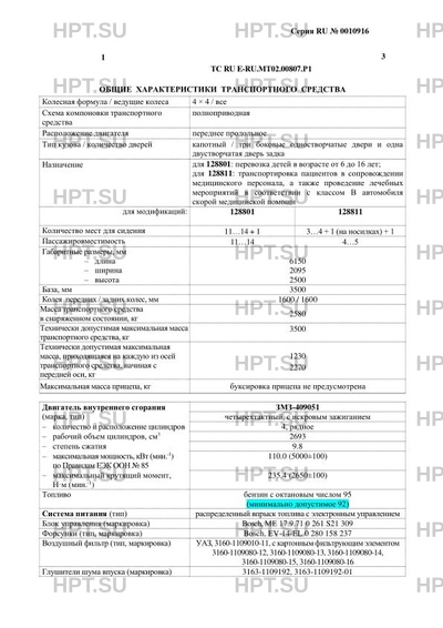 | Оборудование ТС | для 128811: устройство вызова экстренных оперативных служб, специальные предупреждающие огни или сигнально-громкоговорящая установка (СГУ), наружное громкоговорящее устройство, аварийно-вентиляционный люк, медицинское оборудование, кондиционер, автономный отопитель, для 128801: устройство вызова экстренных оперативных служб, аварийно-вентиляционный люк, подножка служебной двери, оборудование согласно требованиям пункта 1.16 приложения № 6 к ТР ТС 018/2011, по заказу: для 128801: тахограф, система навигации ГЛОНАСС, фильтровентиляционная установка, кондиционер, дополнительный отопитель, проблесковый маячек автожелтого цвета, для 128811: тахограф, система навигации ГЛОНАСС |