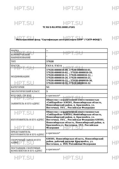 | Предприятие-изготовитель | Общество с ограниченной ответственностью "СибЕвроВэн" 630501, Новосибирская область, Новосибирский район, п. Краснообск, ул. Восточная, 19/1, , Российская Федерация 630501, Новосибирская область, Новосибирский район, п. Краснообск,ул. Восточная, 19/1, Российская Федерация |