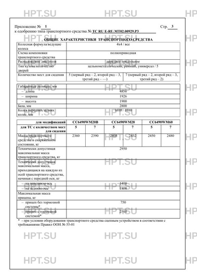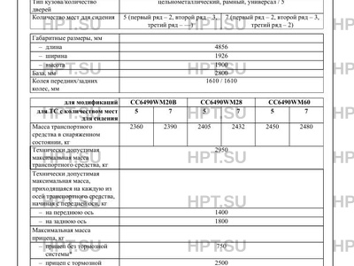 Тип ТС Модификации Экологический класс CC6490WM20В 6 CC6490WM28, CC6490WM60 5