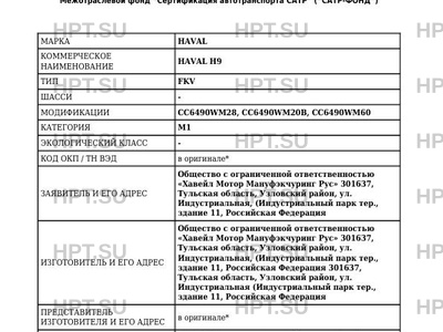 | Коммерческое наименование | HAVAL H9 |