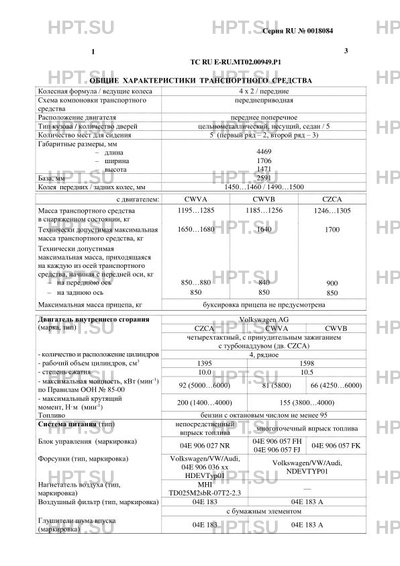 | Марка ТС | VOLKSWAGEN |