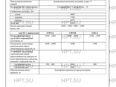 | Марка ТС | VOLKSWAGEN |
