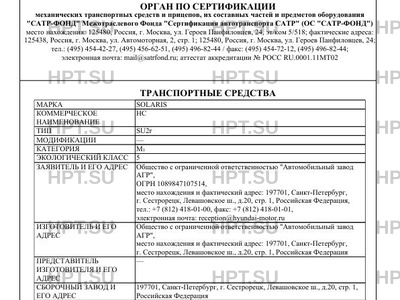 | Марка ТС | SOLARIS |