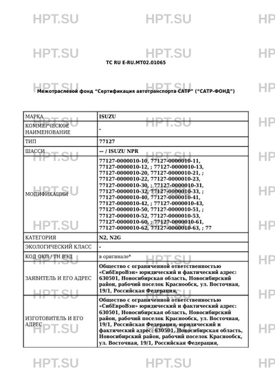 Категория ТС NPR75L-H, NPR82L-H 77127-0000010-40, 77127- 0000010-41, 77127-0000010-42, 77127…