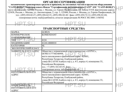Заявитель Общество с ограниченной ответственностью «АУРУС», ОГРН 5177746340998, место нахождения и фактический адрес: 423601, Республика Татарстан, Елабужский район, улица Ш-2 (ОЭЗ Алабуга тер.), д. 4/1, корпус 4, помещение 33, Российская Федерация, тел.: +7 (495) 161-65-55, факс: -, электронная почта: info@aurus-auto.ru