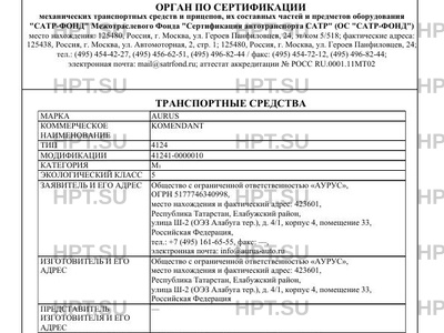 | Орган по сертификации | Орган по сертификации механических транспортных средств и прицепов, их составных частей и предметов оборудования "САTР-ФОНД" Межотраслевого Фонда "Сертификация автотранспорта САТР" (ОС "САТР-ФОНД") |